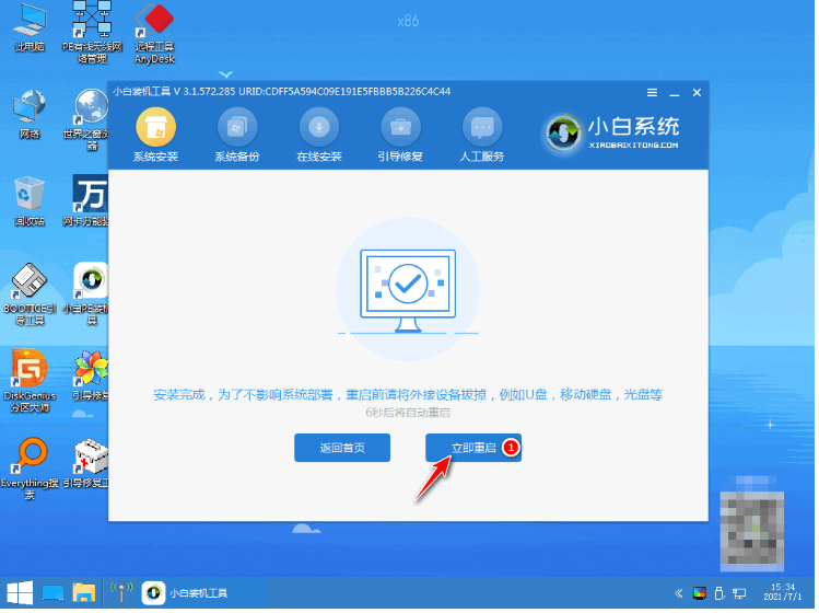 3、當我們系統部署完成后,單擊立即重啟按鈕。