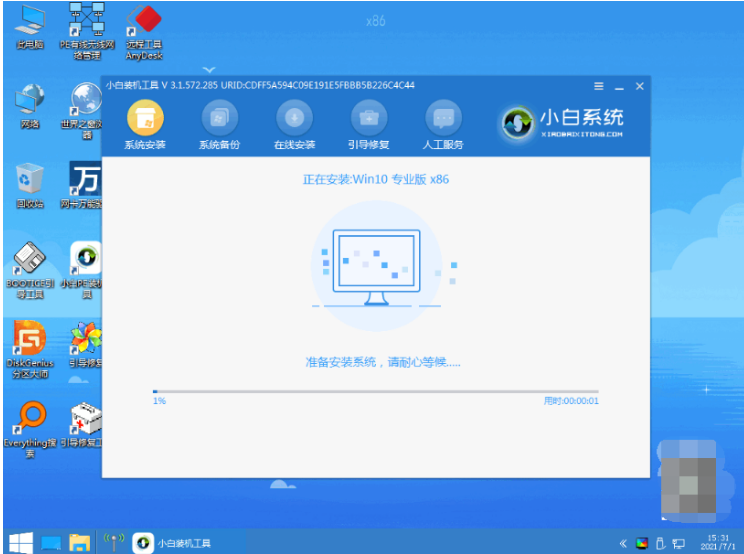 5、電腦進入pe系統后,小白裝機工具會自動安裝系統,請大家耐心等待。