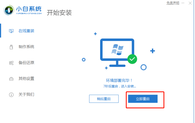 5、在下載完成之后,軟件就會進行自動系統部署了,在這時我們只需耐心等待部署完成之后單擊【立即重啟】即可。