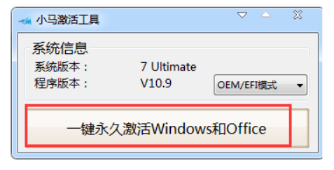 軟件版本:小馬激活工具v10.9
