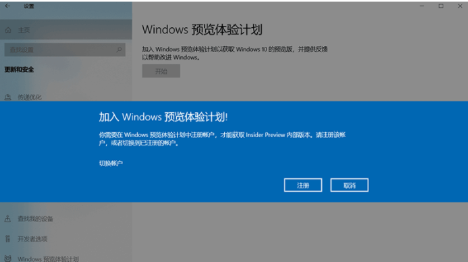 1、打開win10系統菜單按鈕,點擊設置,進入更新和安全,再點擊左側的 “Windows 預覽體驗計劃”。
