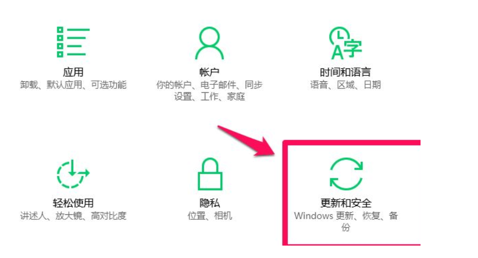 1.回到系統桌面后,我們單擊進入左側的開始菜單,找到系統設置,進入到其首頁當中,單擊出現的更新和安全按鈕。