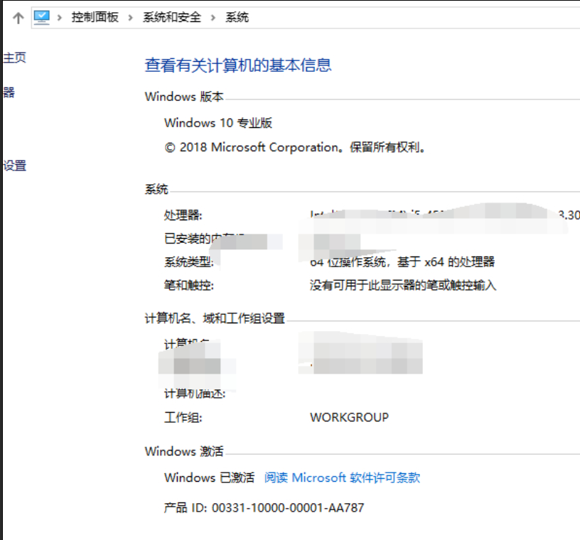 4、重啟電腦,在系統屬性界面中可以看到win10專業版系統已經激活了。
