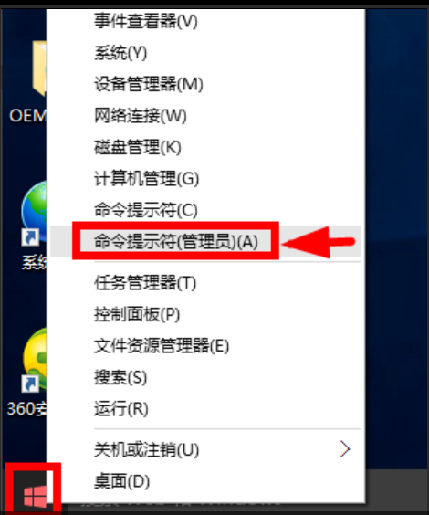 1、鼠標右鍵win10專業版桌面左下角的開始按鈕,在彈出的菜單中選擇命令符號符(管理員)選項打開,進入下一步。