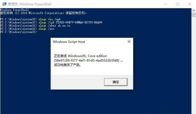 5、輸入命令:slmgr /ato,按回車執行,此時將彈出窗口提示:“成功地激活了產品”。