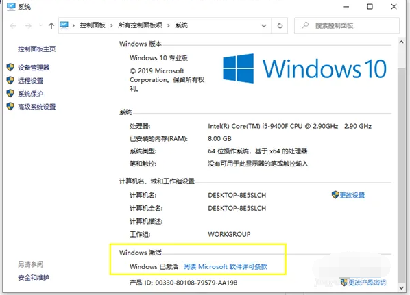 2、來到Windows10屬性窗口后,在窗口中就可以看到當前的系統是否激活。