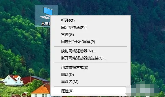 1、首先打開Windows10系統桌面,鼠標右鍵點擊“此電腦”圖標,選擇“屬性”進入。