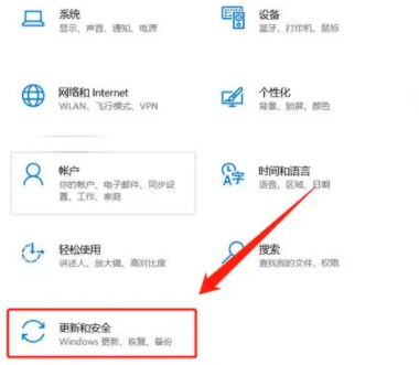 3.點擊“齒輪狀”圖標進入設置選項以后,點擊“更新和安全”選項。