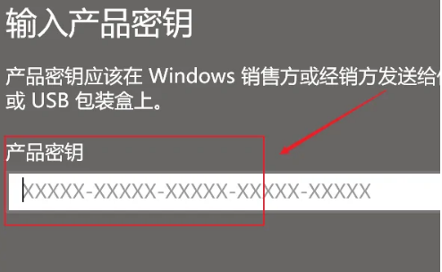 4、就可以輸入我們的windows10產品激活密鑰。