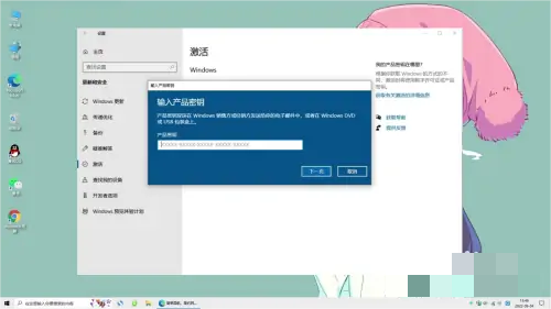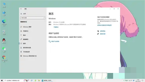 7、找到左側的激活欄,點擊后在右側選擇更改產品密鑰,系統會自動彈出一 個窗口,將剛才復制的密鑰復制到8中,點擊確定激活;
