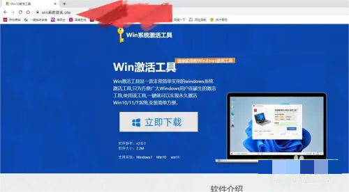1、打開電腦瀏覽器,在最上方輸入:win system activation.site【按鍵盤回車鍵打開】打開后點擊下載激活工具;