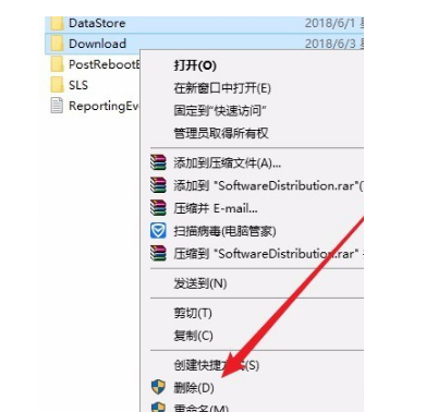 5.接著,選中該文件夾中的“Datastore”與“Download”文件夾,然后右鍵點擊這兩個文件夾,在彈出菜單中選擇“刪除”菜單項,把這兩個文件夾刪除。