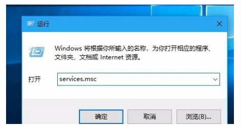 2.接著,在打開的Windows10運行窗口中,輸入命令“services.msc”,然后點擊確定按鈕運行該程序。