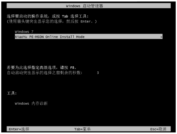 6、重啟電腦過程中在windows啟動頁面,選擇第二項按回車鍵進入到xiaoyu-pe系統。