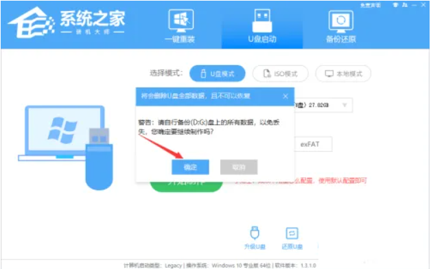 3、工具會自動提示是否開始制作。注意:制作工具將會清理U盤中所有的數據且不可恢復,請提前存儲U盤中重要數據文件。
