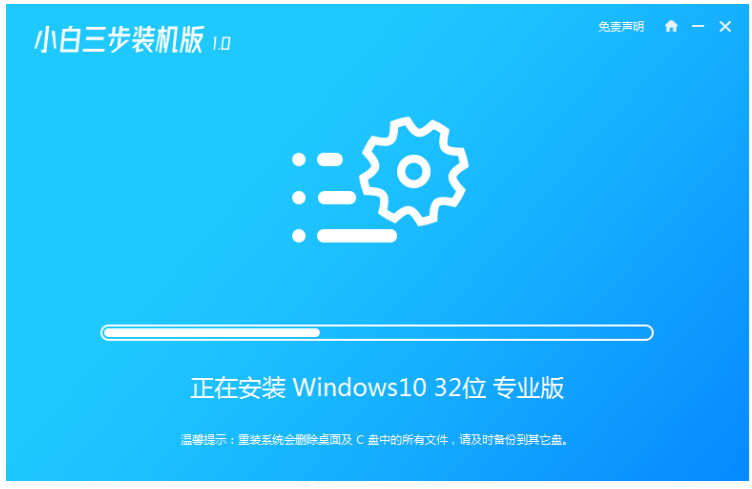 1、小白系統三步裝機在線重裝win10,首先要在網上下載安裝小白三步裝機版工具然后直接打開,選擇需要安裝的win10專業版系統,點擊立即重裝。