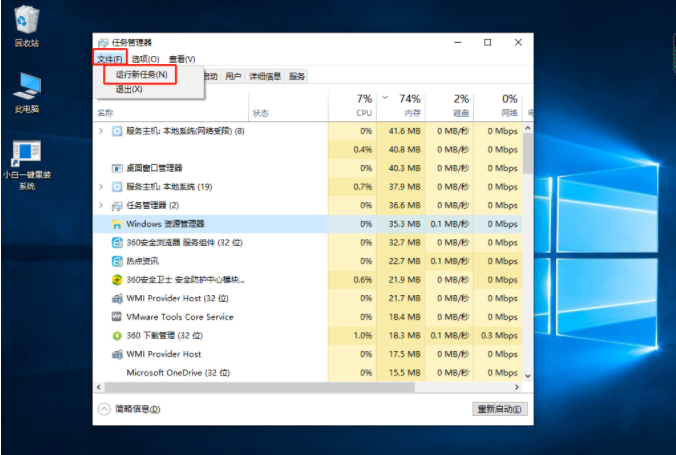 4、如果電腦里面沒有上面的進程文件,那么我們需要打開如下如所示的運行新任務。