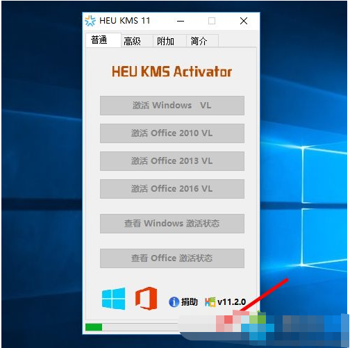 2、將會開始執行激活win10過程,界面變成灰色,底部有個綠色進度條,耐心等待即可;