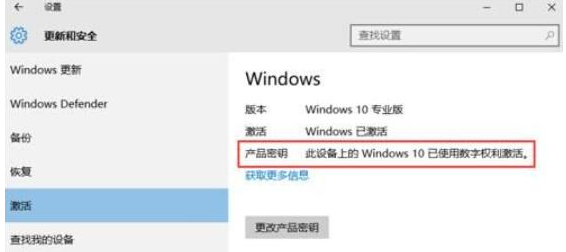 4、這時可以看到出現的密鑰,我們再次點擊開始菜單---設置---更新和安全---激活---更改產品密鑰,輸入獲得的密鑰進去。