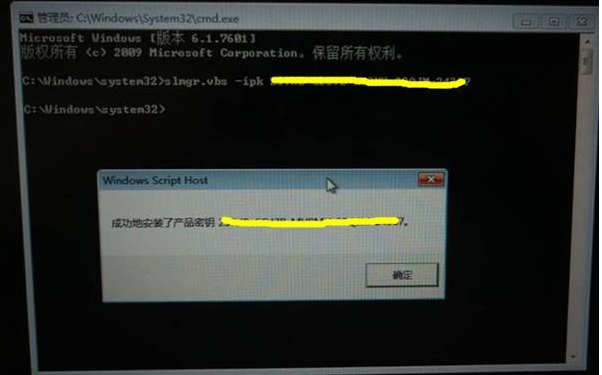 6、輸入命令:slmgr.vbs -ipk XXXXX-XXXXX-XXXXX-XXXXX-XXXXX(25位密鑰,注意-ipk前后的空格),回車即可安裝密鑰。