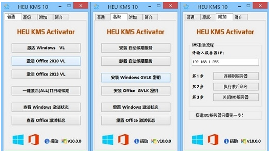 迷你版KMS 是一款支持Win8.1/Office 2013等聯網激活版本最多的激活工具,幾乎能夠激活全部版本的Windows和Office,包括Vista、Win7、Win8、1、Server 2008、Win10、Office 2010、Office 2013、Office 2016和Office 2019各個版本。它體積小巧不到2MB,且無需安裝NET 4.0即可完美運行,圖形化的中文界面使操作一目了然。