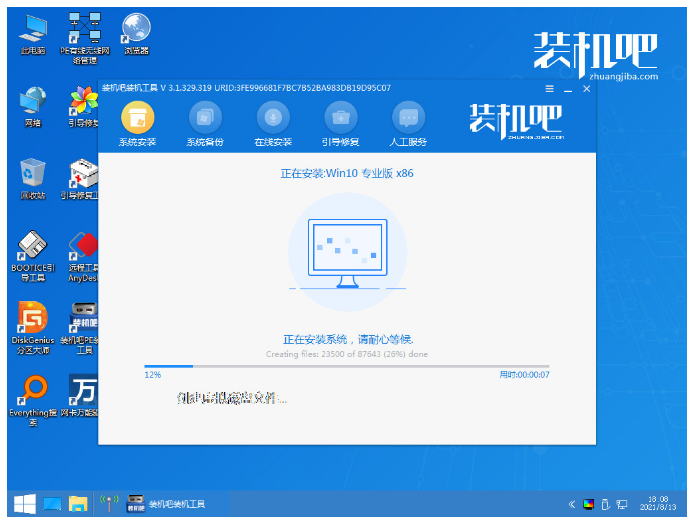 5、在pe系統桌面打開裝機吧裝機工具,選擇要安裝的win10系統,點擊安裝到電腦c盤上。
