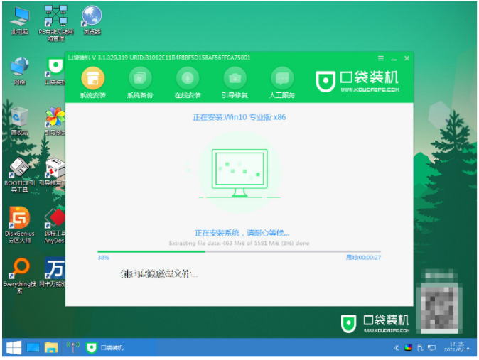 7、當進入pe系統后,將會自動繼續系統的安裝。