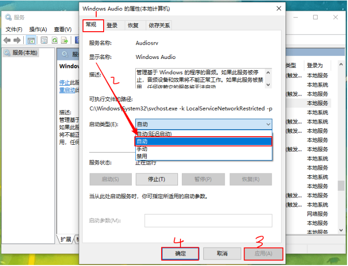 3、然后在“常規”菜單下將啟動類型調整為“自動”,點擊“應用”-“確定”即可解決。