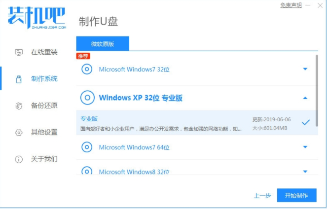 2、選擇我們自己需要安裝的電腦系統,點擊開始制作啟動盤。