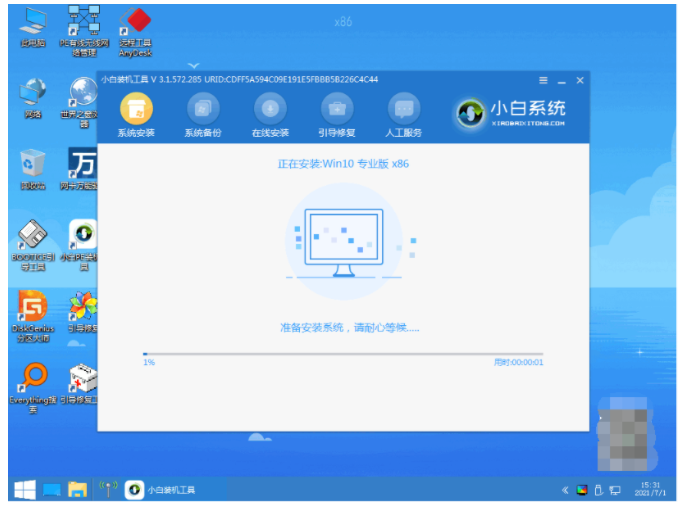 5、鼠標雙擊打開小白裝機工具安裝系統到c盤,耐心等待裝機軟件自動安裝,完成后選擇重啟電腦。