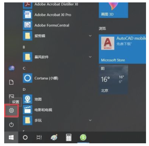 2. 開始菜單頁面中,點擊頁面中的“設置”按鈕,進入Win10系統設置頁面。