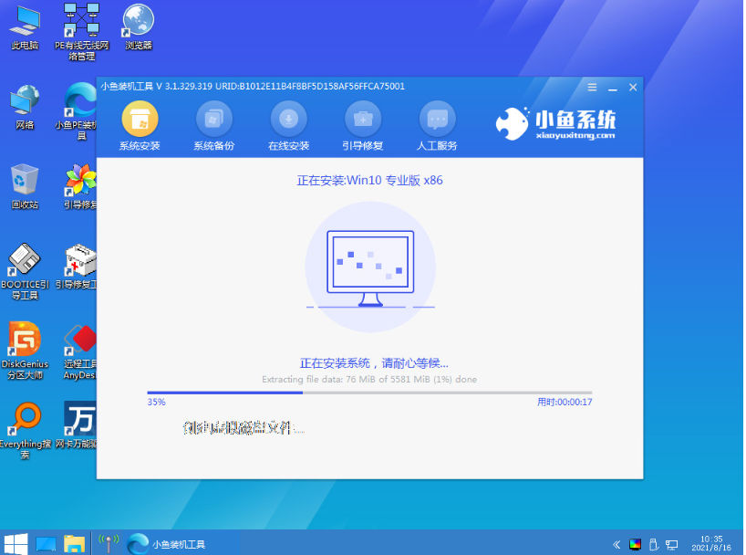 4、來到pe系統后,小魚裝機軟件會自動開始安裝win10系統。
