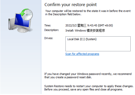 方法一:通過創建的還原點還原系統(適合之前有創建過還原點的系統)