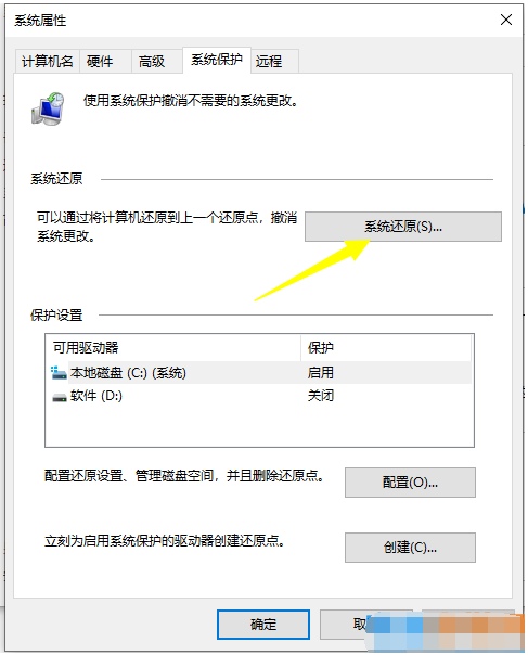 3、在系統屬性窗口下的系統保護選項卡里點擊“系統還原”。