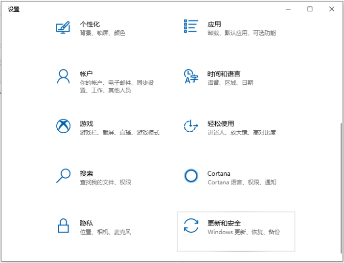 2、在Win10系統設置窗口中,點擊更新和安全進入。