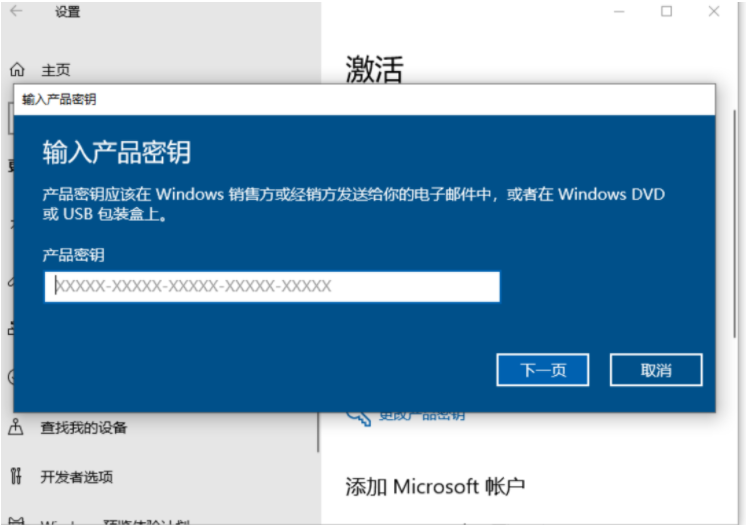4、接下來我們需要輸入win10激活密鑰,點擊下一步開始執行激活等等操作。