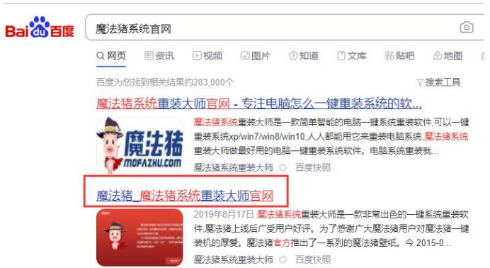 1.首先我們打開瀏覽器搜索魔法豬重裝系統官網,下載魔法豬一鍵重裝系統軟件。