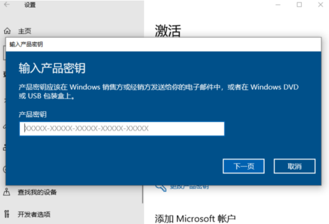 4、接著輸入win10激活密鑰,點擊下一步執行激活即可。
