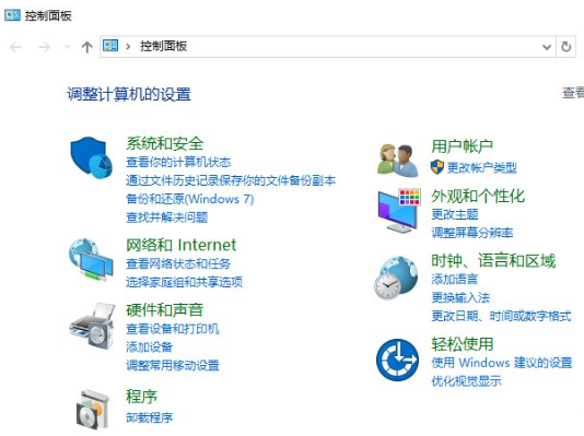 2、點擊“控制面板”選項后,這個時候系統會打開的“控制面板”對話窗口。如圖所示: