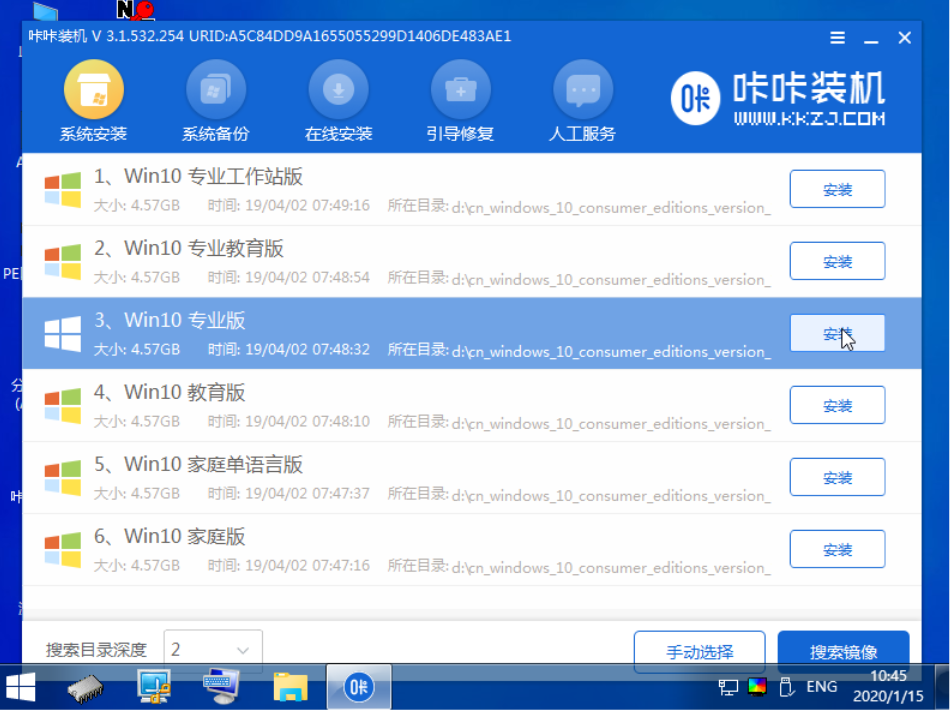 5、打開咔咔裝機工具,選擇win10系統點擊安裝到系統盤c盤。