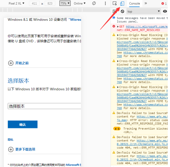 2.接著我們按鍵盤上的 F12,再點擊手機圖標,把當前瀏覽的界面切換為手機模式。再按 F5 刷新界面,這個時候即可看到有下載鏡像的選項了。