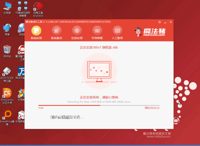 5、進入電腦pe系統之后繼續對win10系統進行安裝。