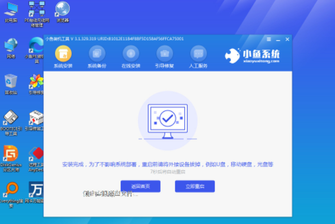 5、將系統安裝到系統盤c盤,點擊開始安裝即可。等待安裝完成后,選擇立即重啟按鈕。