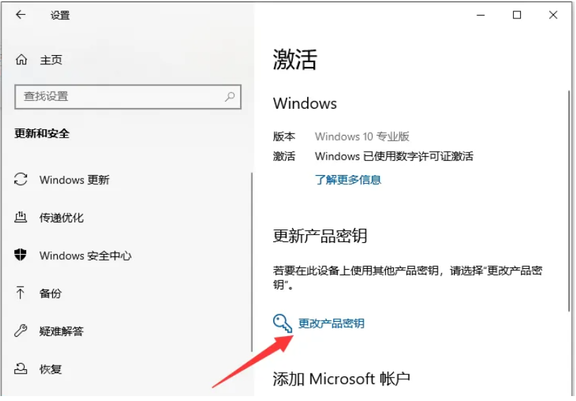 3、進到更新和安全頁面,選擇左側的激活選項點擊即可。