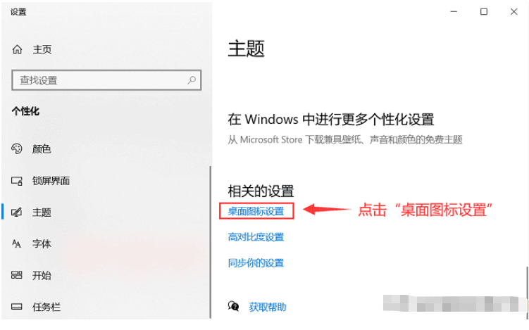 2.在“個性化”中進入“主題”的設置,然后在里面找到并進入“桌面圖標設置”;