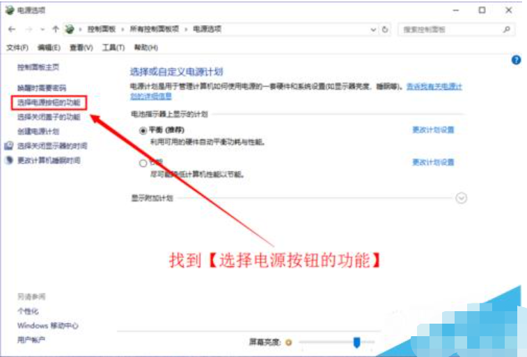 2、單擊“電源選項”,選擇電源按鈕的功能”。