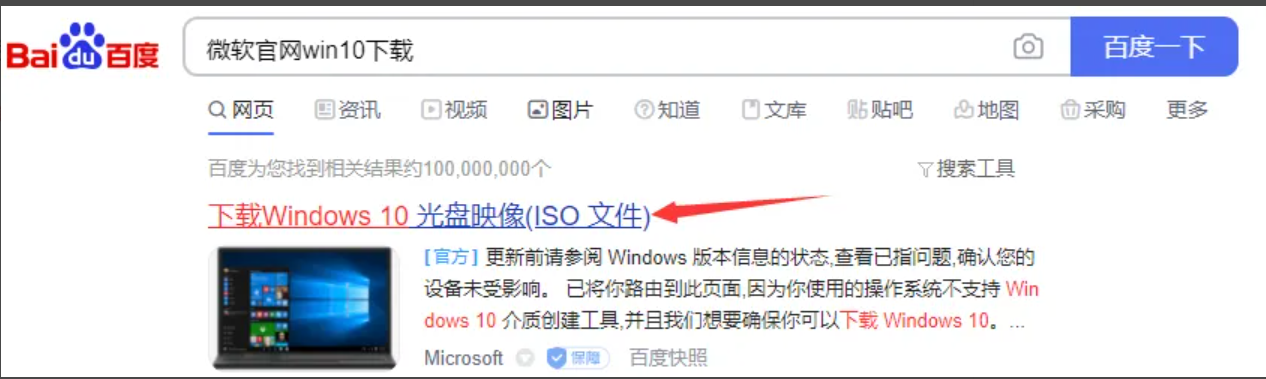 1、首先我們搜索微軟官網win10下載,找到微軟的官方網站。