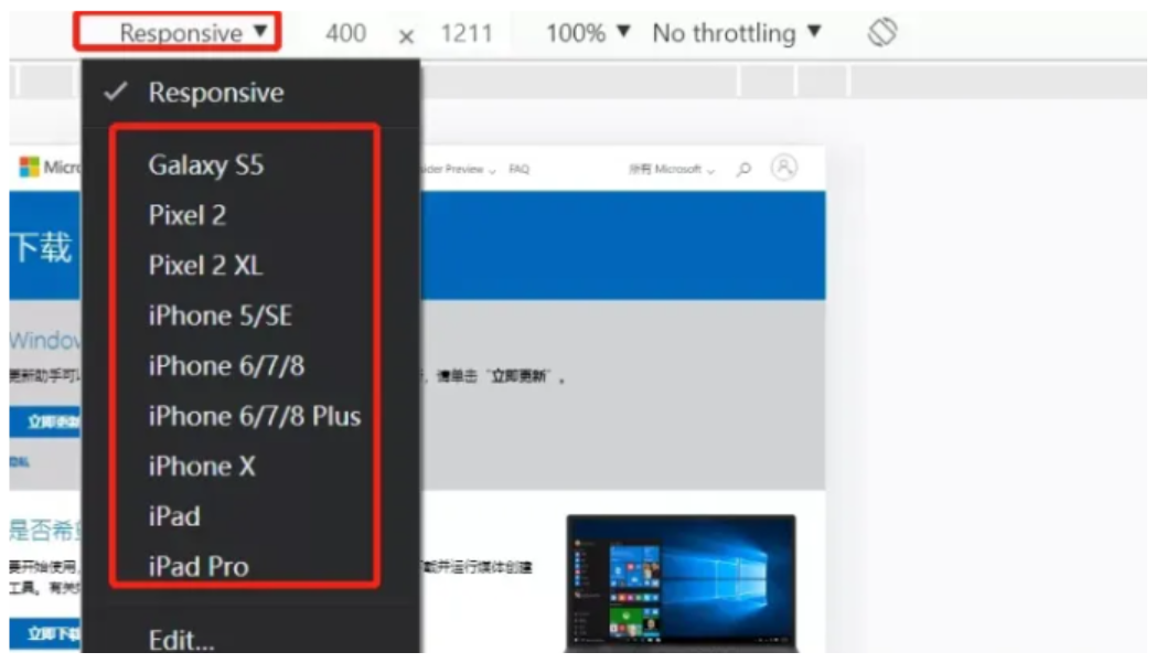 3、左側選擇任何一個移動設備型號,再刷新頁面。