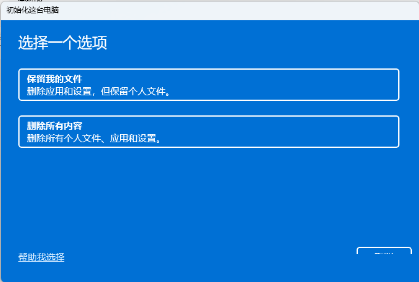 5、初始化這臺電腦,大家可以根據自己的情況選擇,是【保留我的文件(刪除應用和設置,但保留個人文件)】,還是【刪除所有內容(刪除所有個人文件、應用和設置)】;
