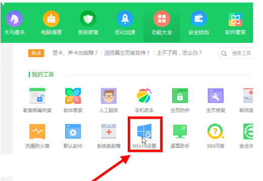 方法一:下載360安全衛士在【我的工具】中找到【win10設置】。